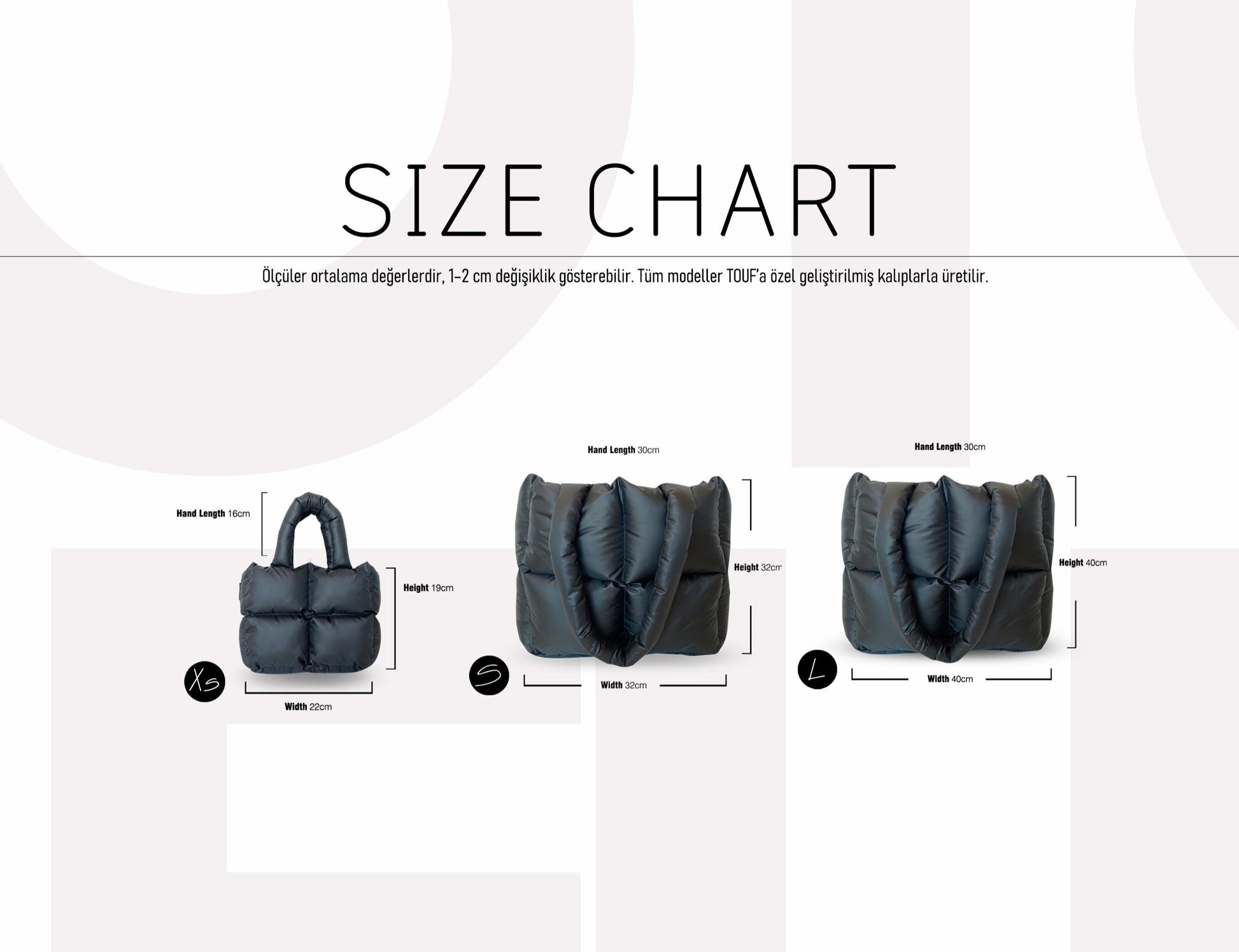 TOUF Small Puffer Çanta, güçlü duruşu ve fonksiyonel tasarımıyla günlük stile net bir karakter katar. Su geçirmez kumaşı ve dolgun puffer formu sayesinde hem şehir hayatına uyum sağlar hem de formunu korur.
